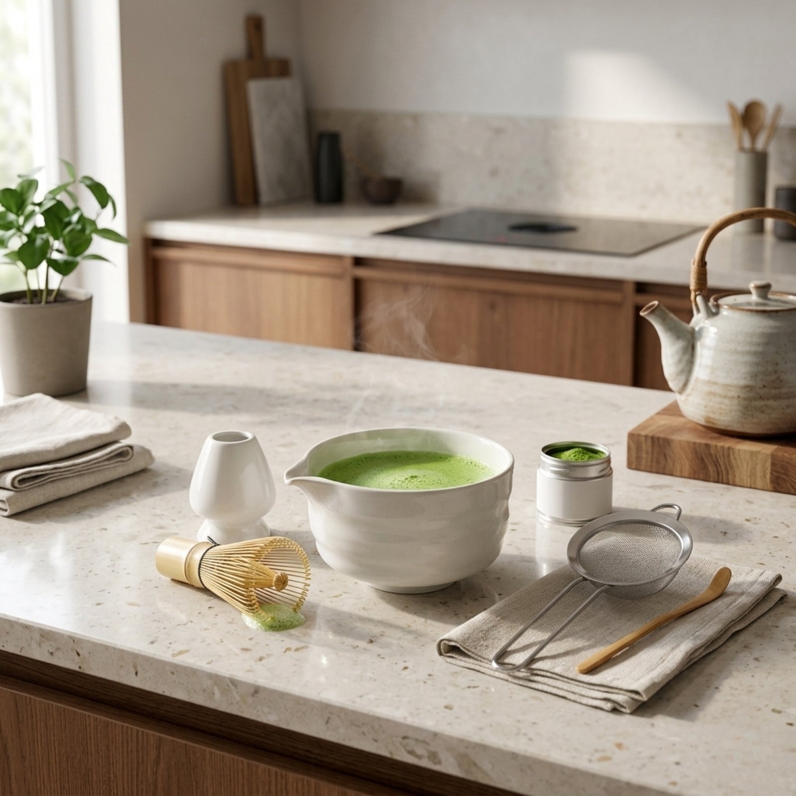 - Wszechstronność zastosowania: Zestaw zawiera również sitko ze stali nierdzewnej oraz łyżeczkę z bambusa, co czyni go kompletnym narzędziem do przygotowywania herbaty matcha. Dzięki temu możesz cieszyć się różnorodnymi napojami na bazie matchy.