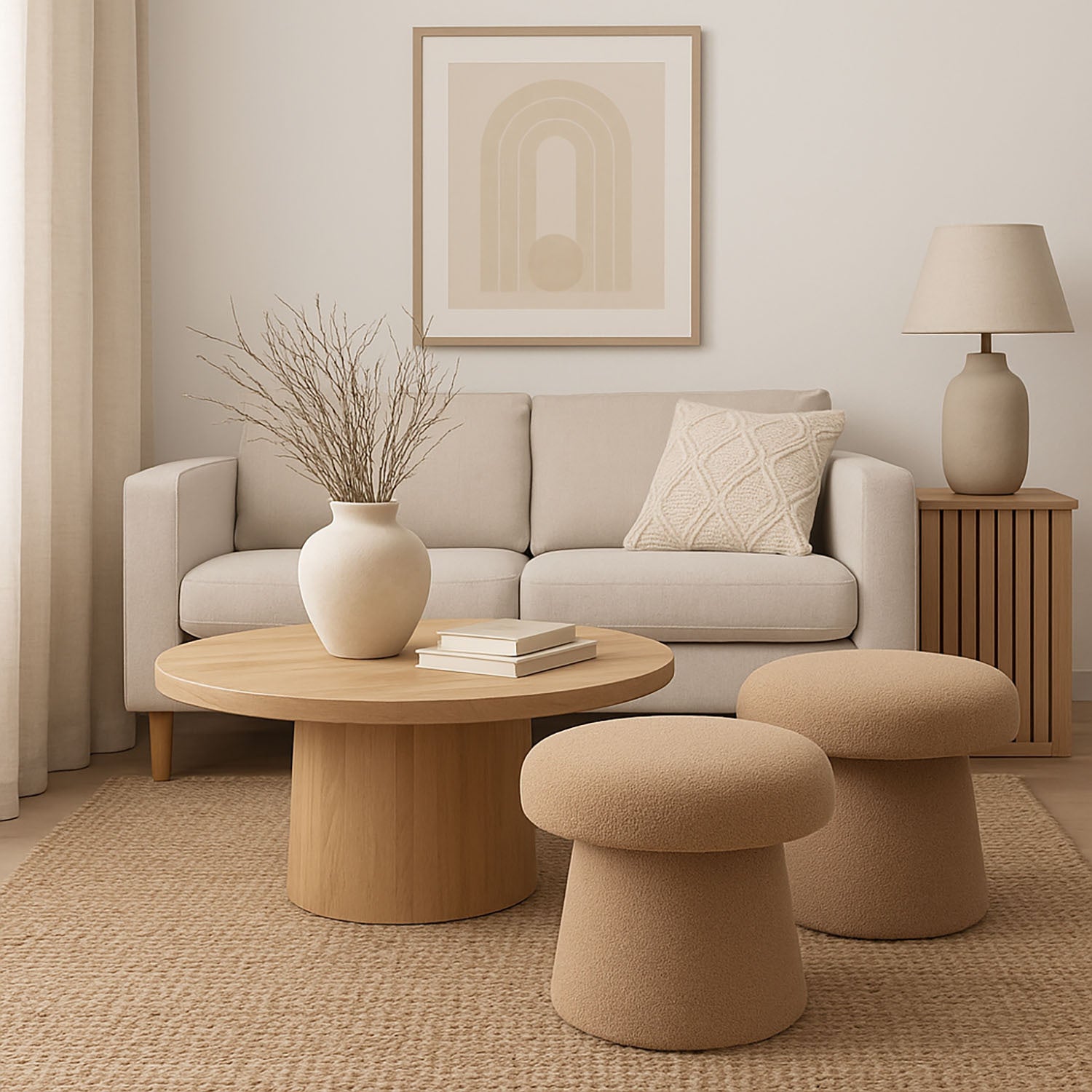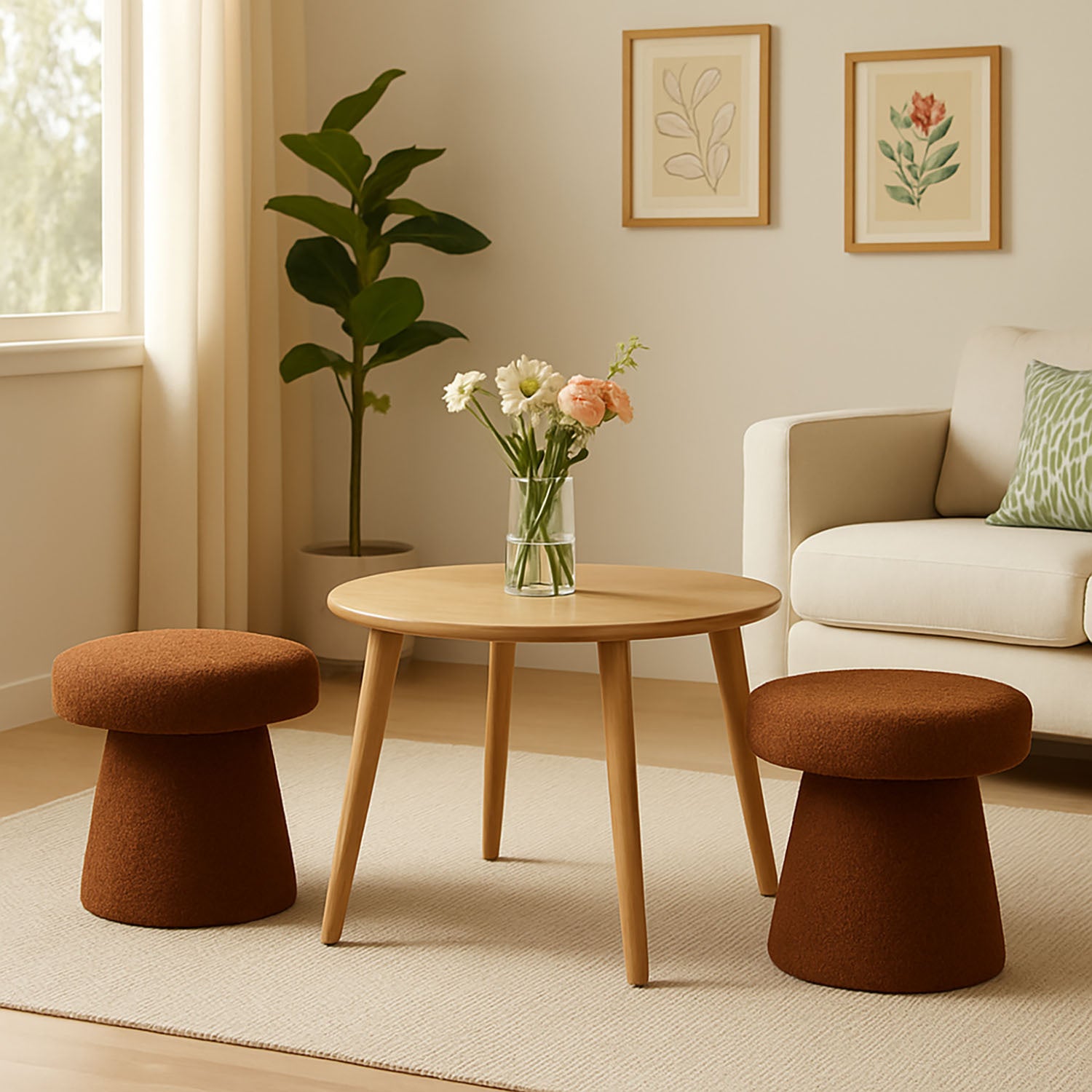 Pufa okrągła tapicerowana teddy do salonu i sypialni - uniwersalne rozwiązanie do każdego wnętrza