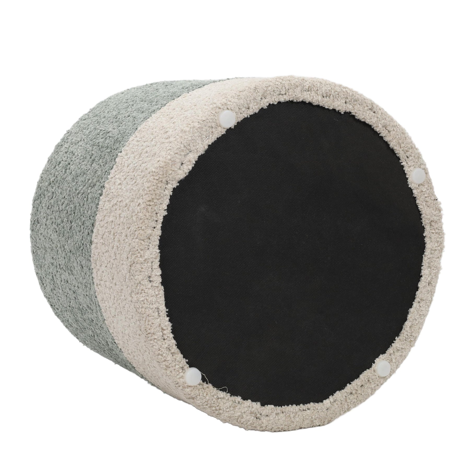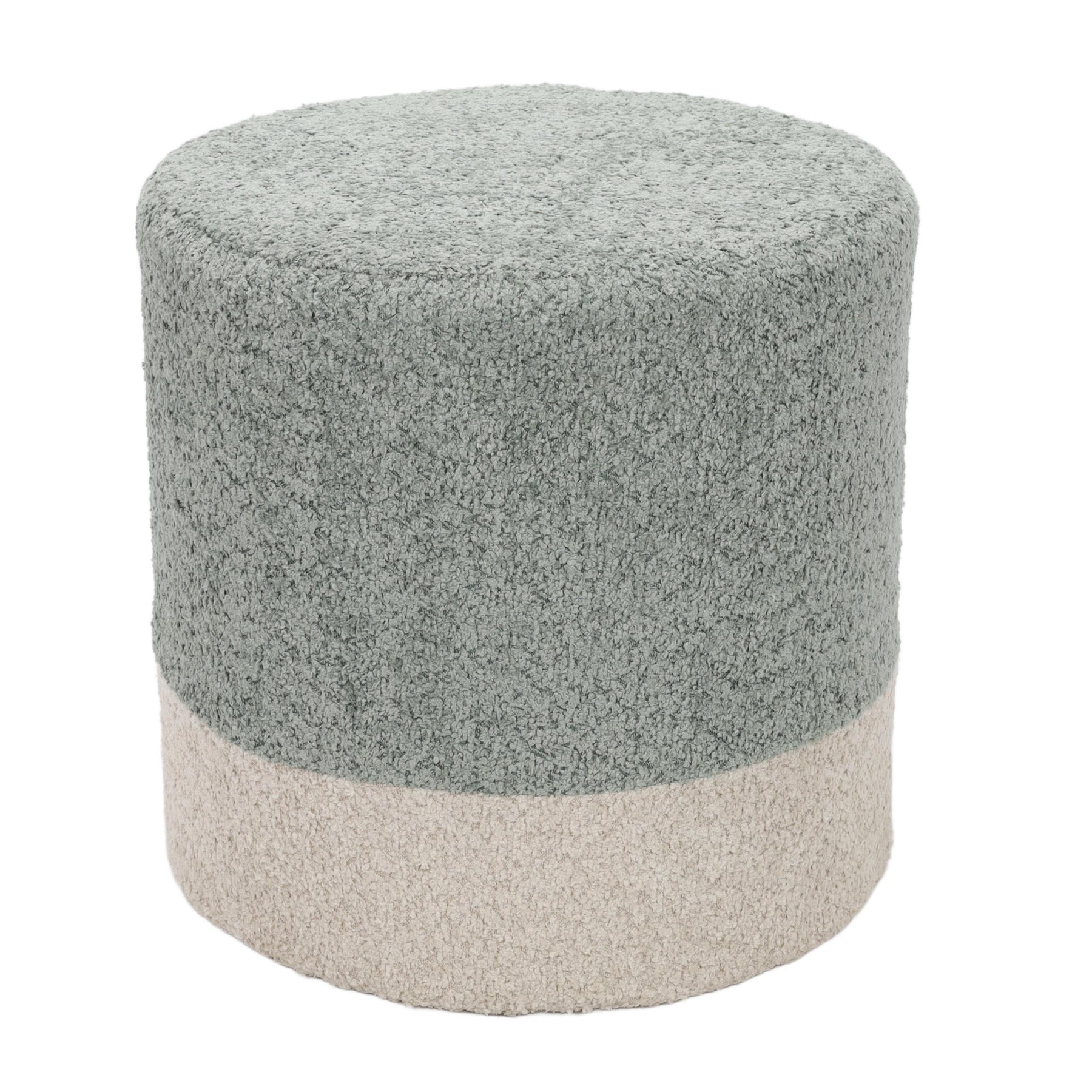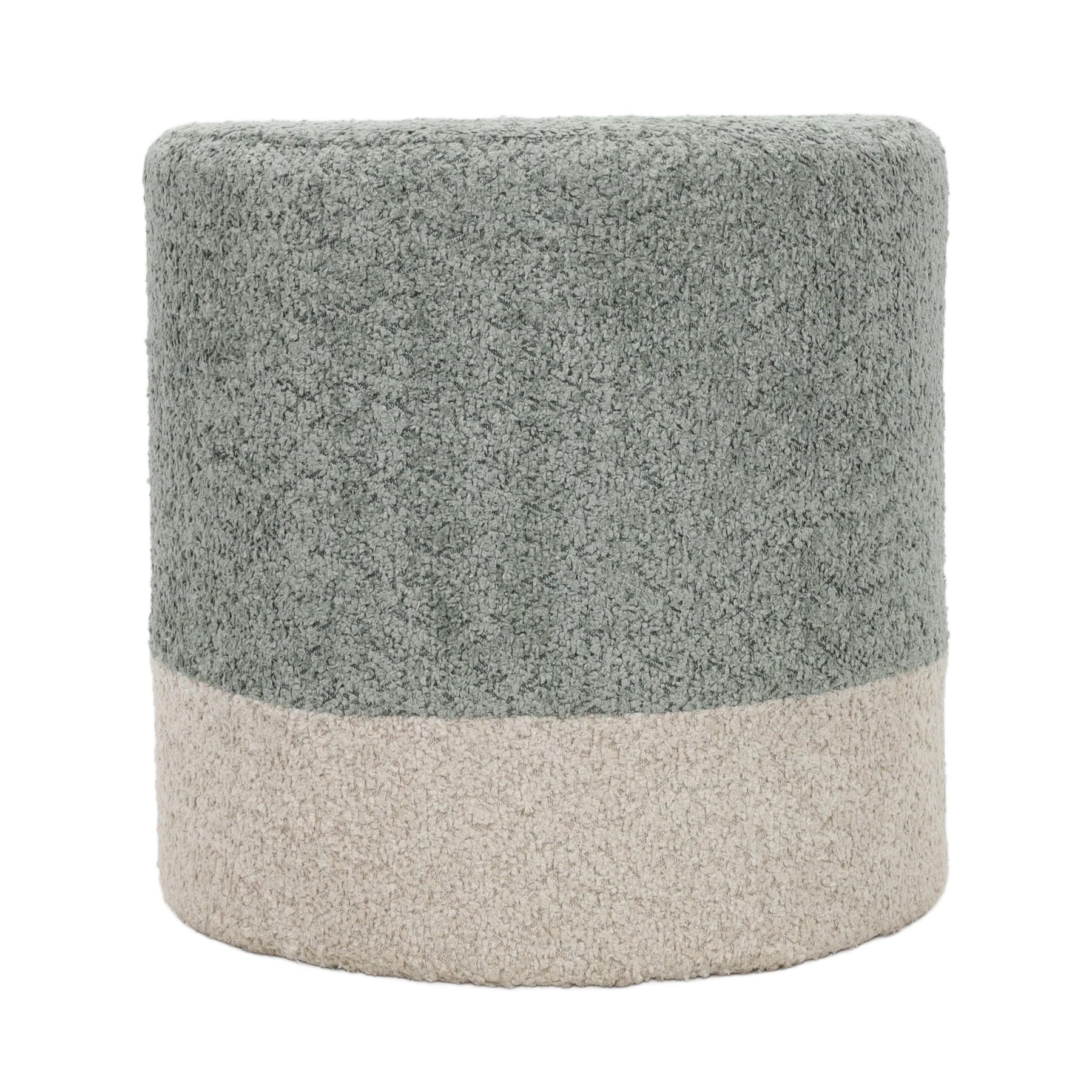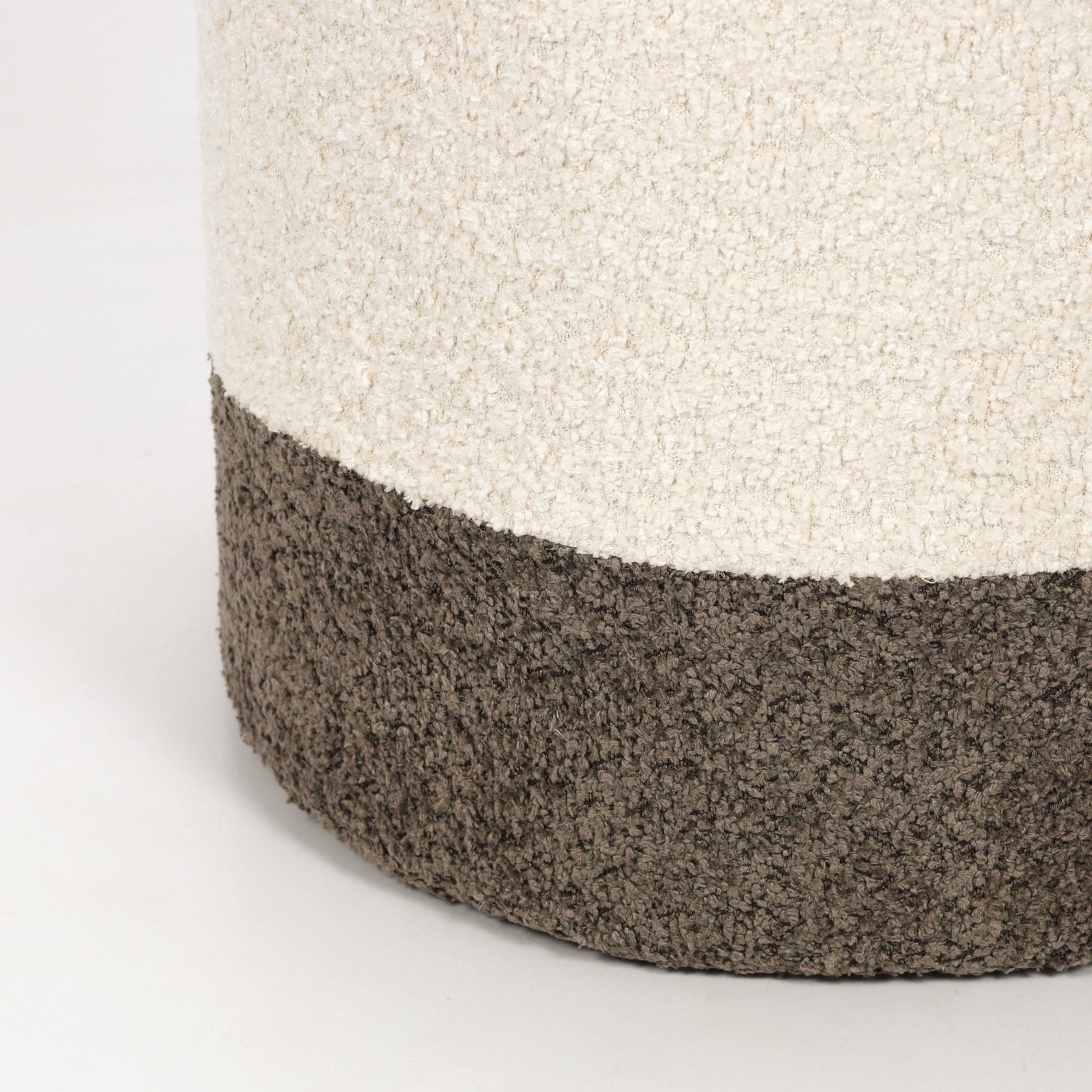 Okrągła pufa tapicerowana boucle do siedzenia i jako podnóżek - idealne połączenie funkcjonalności i estetyki w każdym wnętrzu