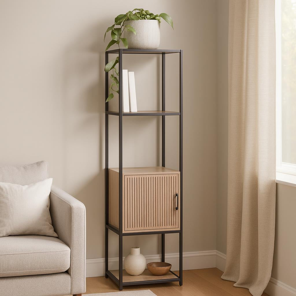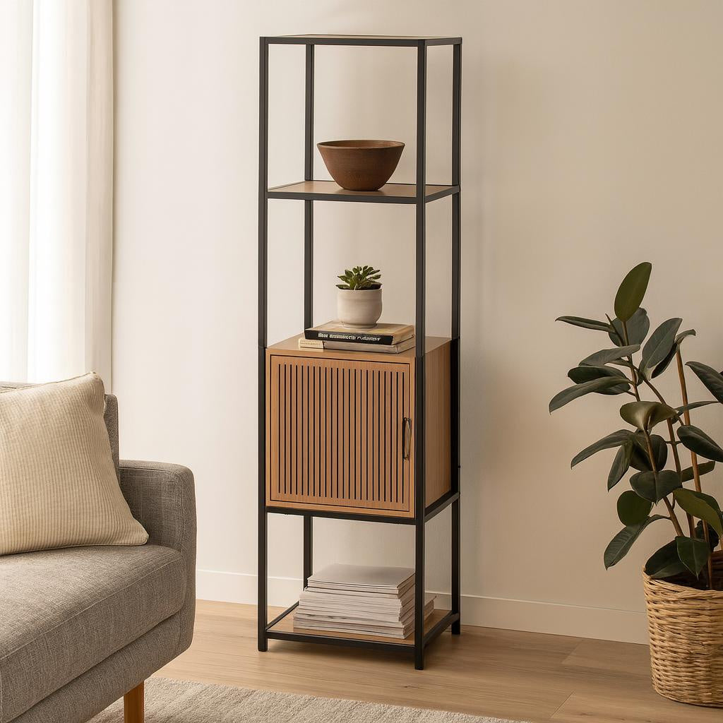 - Stylowy design: Połączenie czarnej metalowej ramy z naturalnym wykończeniem drewnianych półek nadaje regałowi nowoczesny i elegancki wygląd. Dzięki temu doskonale wkomponuje się w różnorodne aranżacje wnętrz.