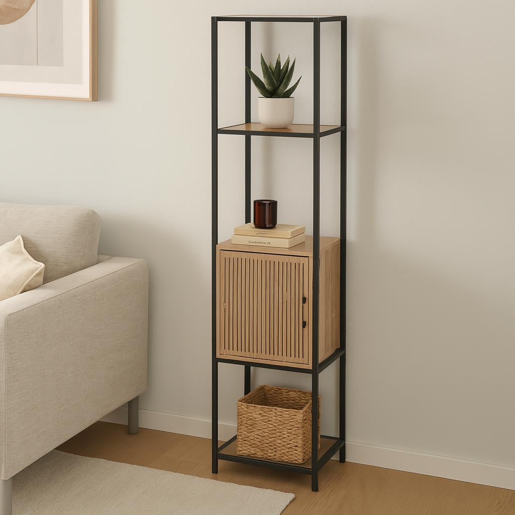 - Przestronność i funkcjonalność: Regał biblioteczka z szafką KASTO o wymiarach 43 x 33 x 153 cm to idealne rozwiązanie do przechowywania książek, dekoracji oraz innych drobiazgów. Dzięki pięciu poziomom, w tym zamkniętej szafce, zyskujesz dodatkowe miejsce na wszystko, co chcesz mieć pod ręką.