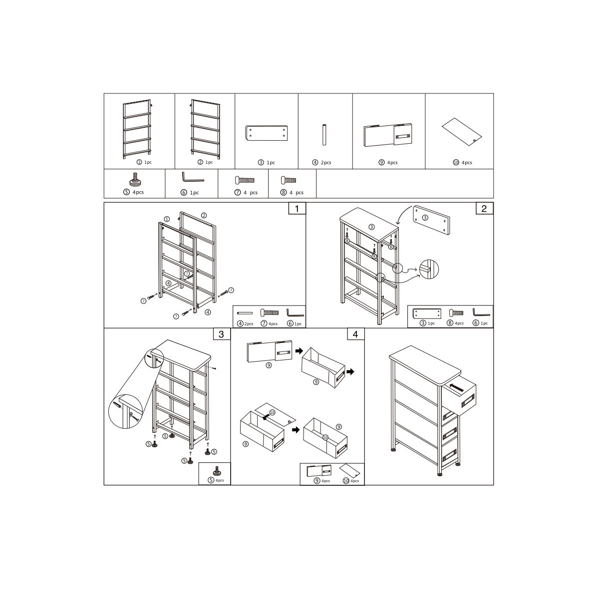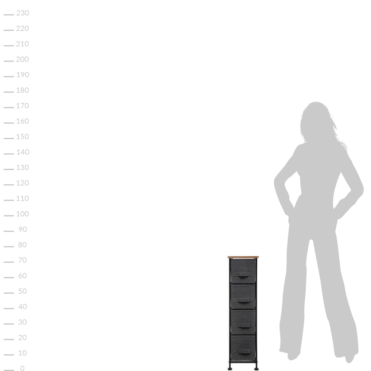 - Cztery tekstylne szuflady: Duża ilość miejsca do przechowywania, z możliwością schowania przedmiotów poza zasięgiem wzroku.