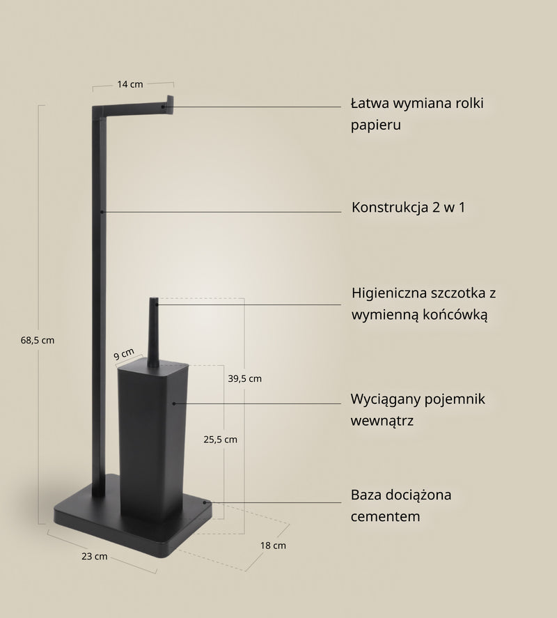 Stojak na papier toaletowy z pojemnikiem na szczotkę WC 2 w 1 - funkcjonalność 2 w 1 oszczędza miejsce w łazience