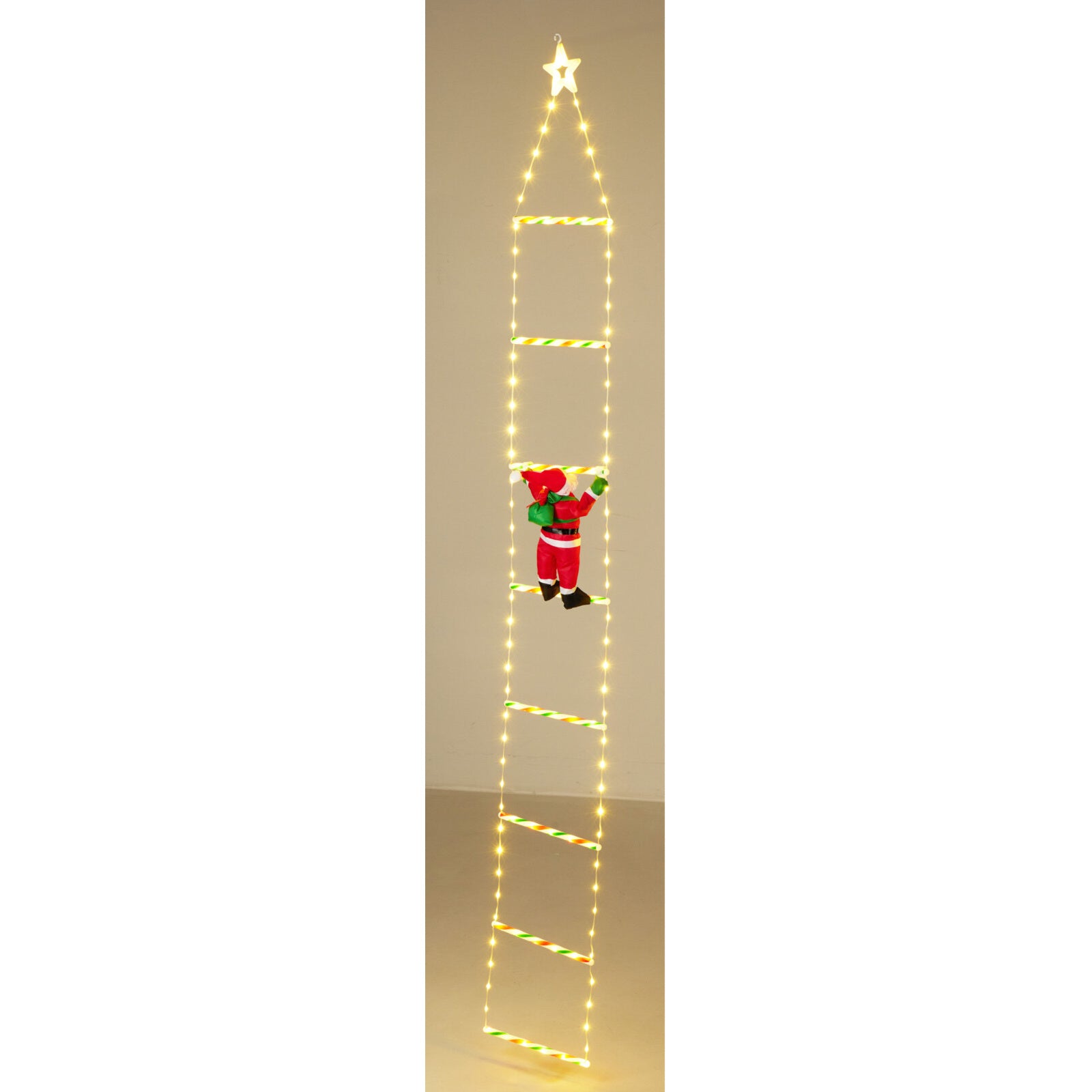 - Magiczna atmosfera świąt: Świąteczna dekoracja z wizerunkiem Świętego Mikołaja na drabinie wprowadza radosny nastrój do każdego wnętrza i ogrodu. Dzięki 124 LED-om w ciepłym, białym kolorze lub z wielokolorowymi LEDami, stworzysz niezapomnianą atmosferę podczas świątecznych spotkań.