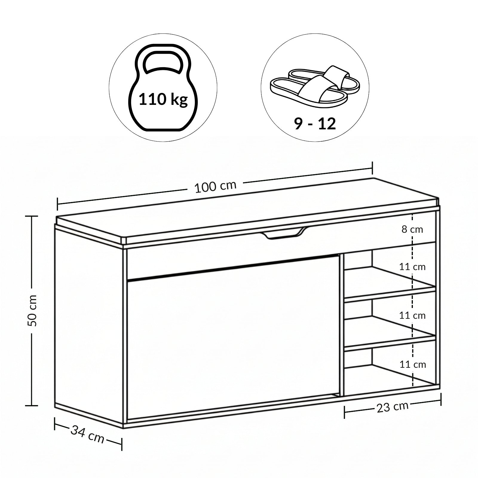 Szafka na buty z siedziskiem GRADIA 100x34x50 cm - idealne połączenie funkcjonalności i estetyki w Twoim przedpokoju