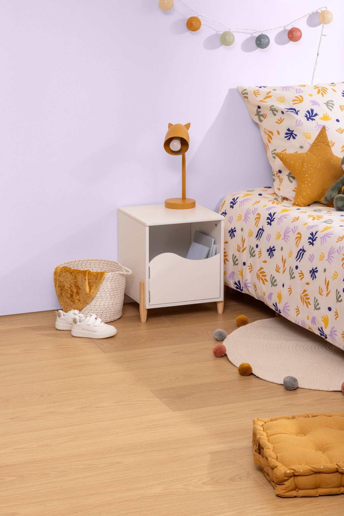 Szafka nocna FJELLA do pokoju dziecięcego z półką i szufladą - funkcjonalny i stylowy dodatek do dziecięcej przestrzeni