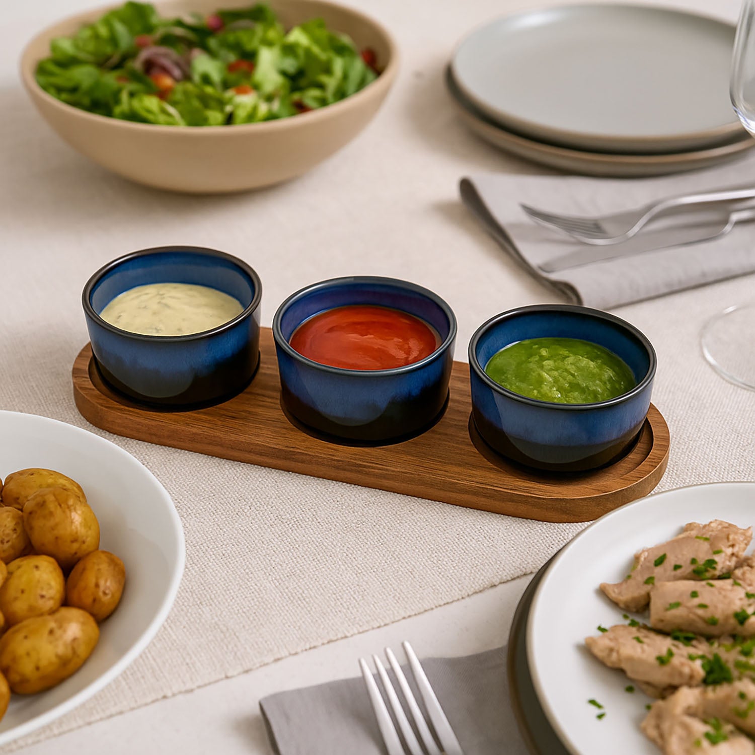 - Praktyczny zestaw serwujący: Taca na przekąski z miseczkami z kamionki to idealne rozwiązanie na każdą okazję. Dzięki trzem miseczkom możesz serwować różnorodne przekąski, co sprawia, że staje się nieodłącznym elementem spotkań towarzyskich.