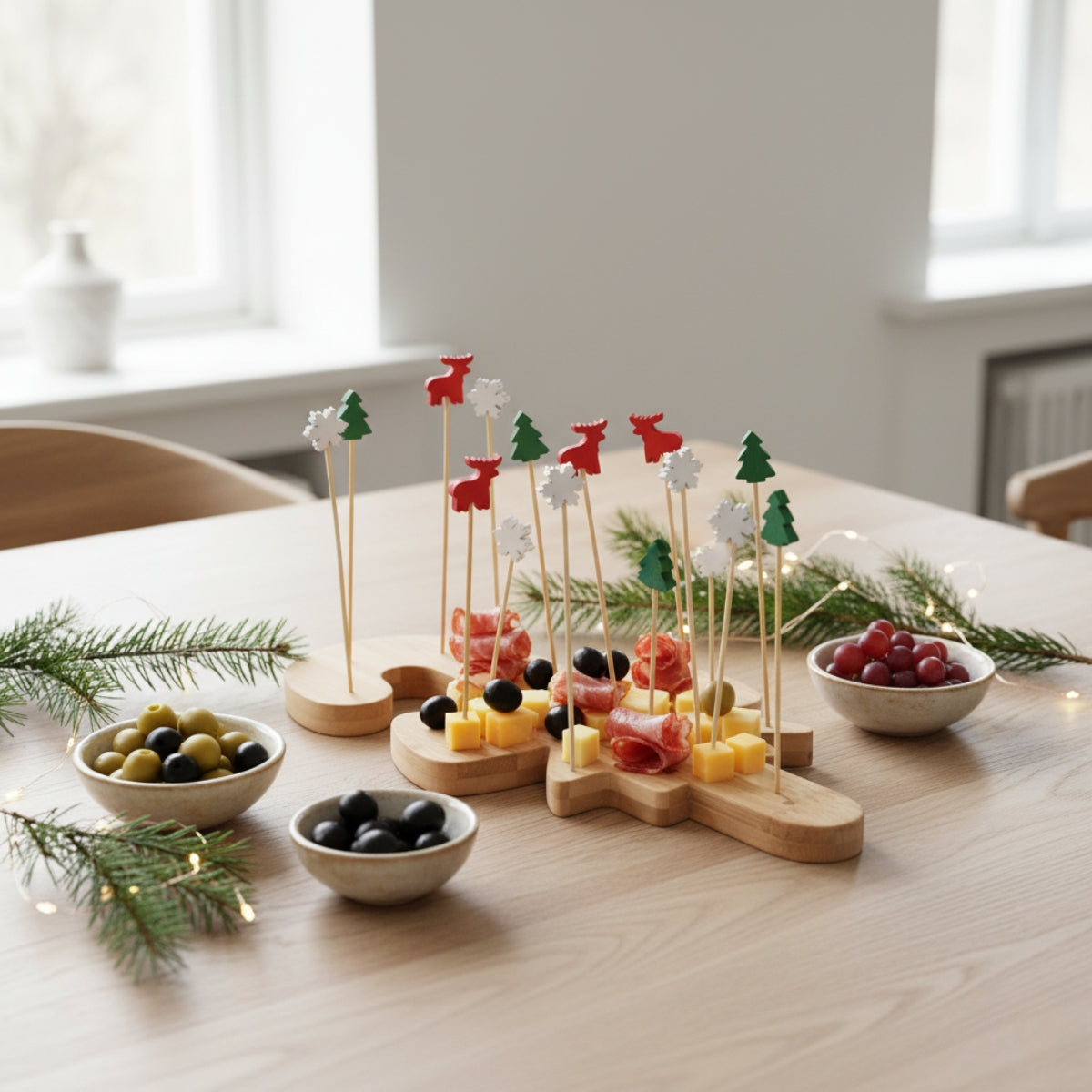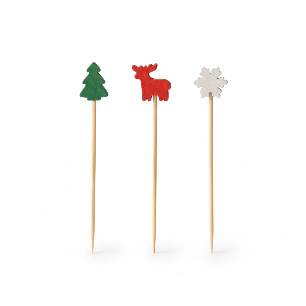 - Świąteczne akcesoria: W zestawie znajduje się 11 wykałaczek w trzech różnych wzorach: renifery, choinki i płatki śniegu. Te urocze dodatki sprawią, że każda przekąska nabierze wyjątkowego charakteru.