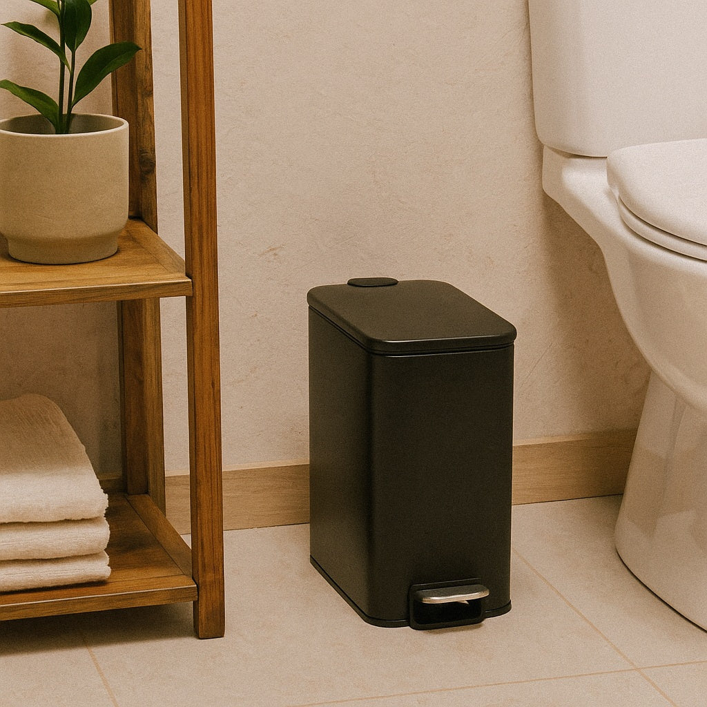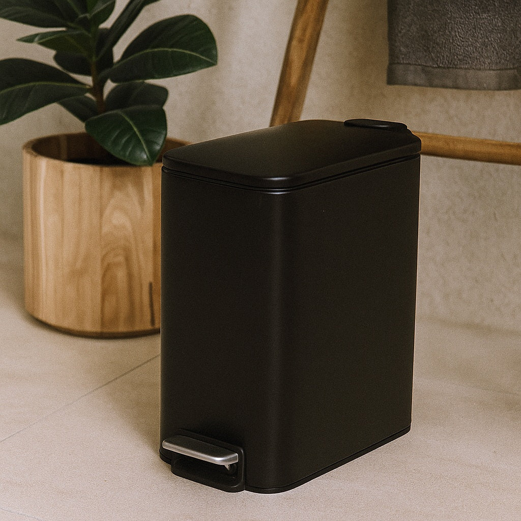 Wąski kosz łazienkowy z pedałem 5 l metalowy elegancki - idealny do małych przestrzeni z funkcjonalnym designem