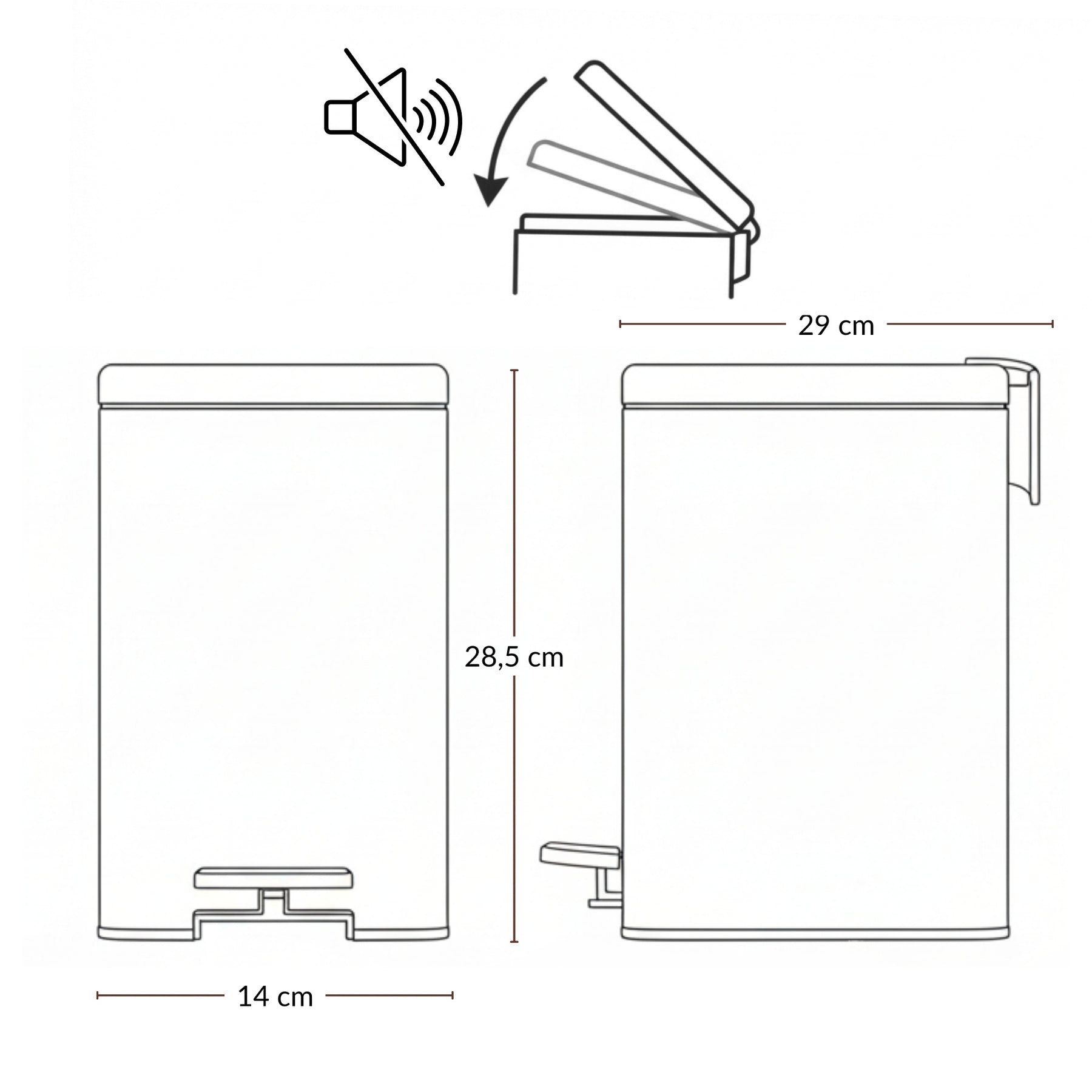 - Funkcjonalność: Wyposażony w pedał otwierający, co umożliwia bezdotykowe korzystanie z kosza. Wolnoopadająca pokrywa zapewnia ciche zamykanie, eliminując nieprzyjemne dźwięki.