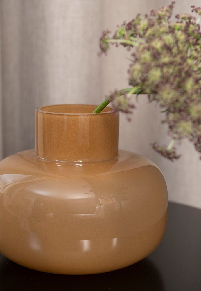 - Stylowy kolor: Pomarańczowy odcień wazonu wprowadza ciepło i przytulność do wnętrza, tworząc harmonijną atmosferę w każdym pomieszczeniu.