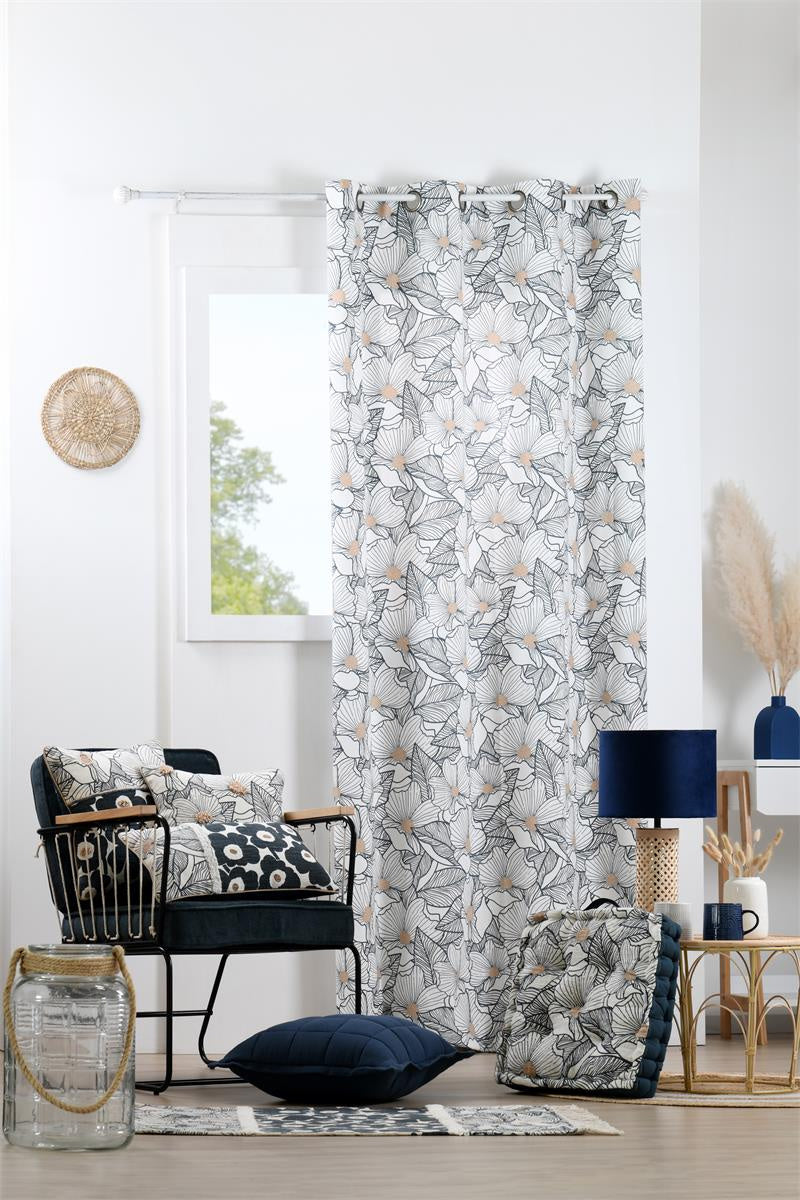 Zasłona bawełniana EUGENIE z kwiatowym wzorem 140x260 cm - Wysoka jakość materiału zapewniająca trwałość i przyjemność w dotyku