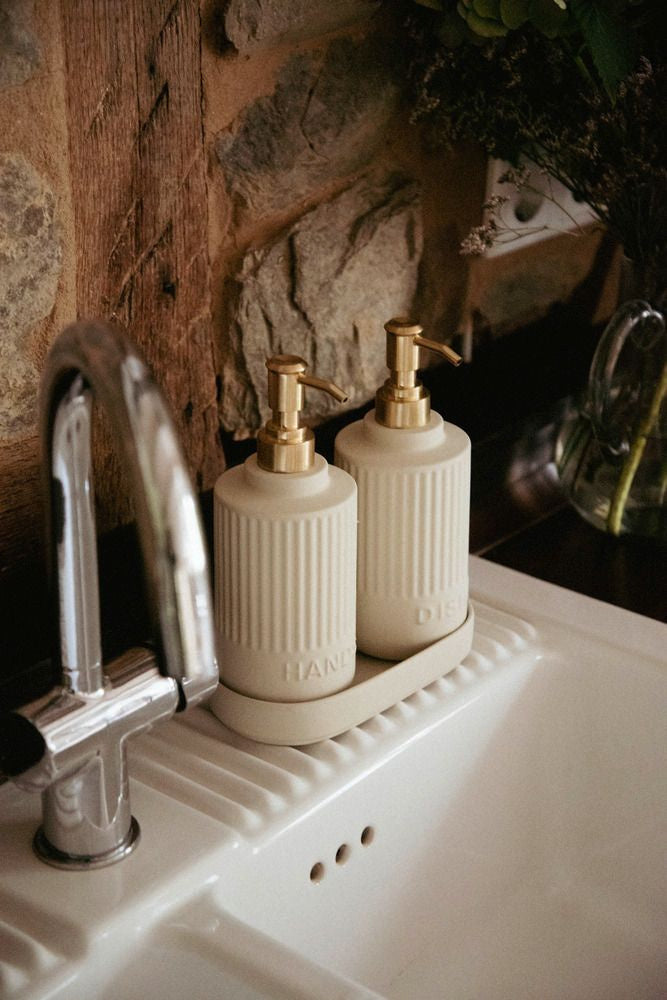 Elegancki zestaw dozowników do płynów z ceramiki z podstawą HEIDI - funkcjonalność i estetyka w każdej kuchni