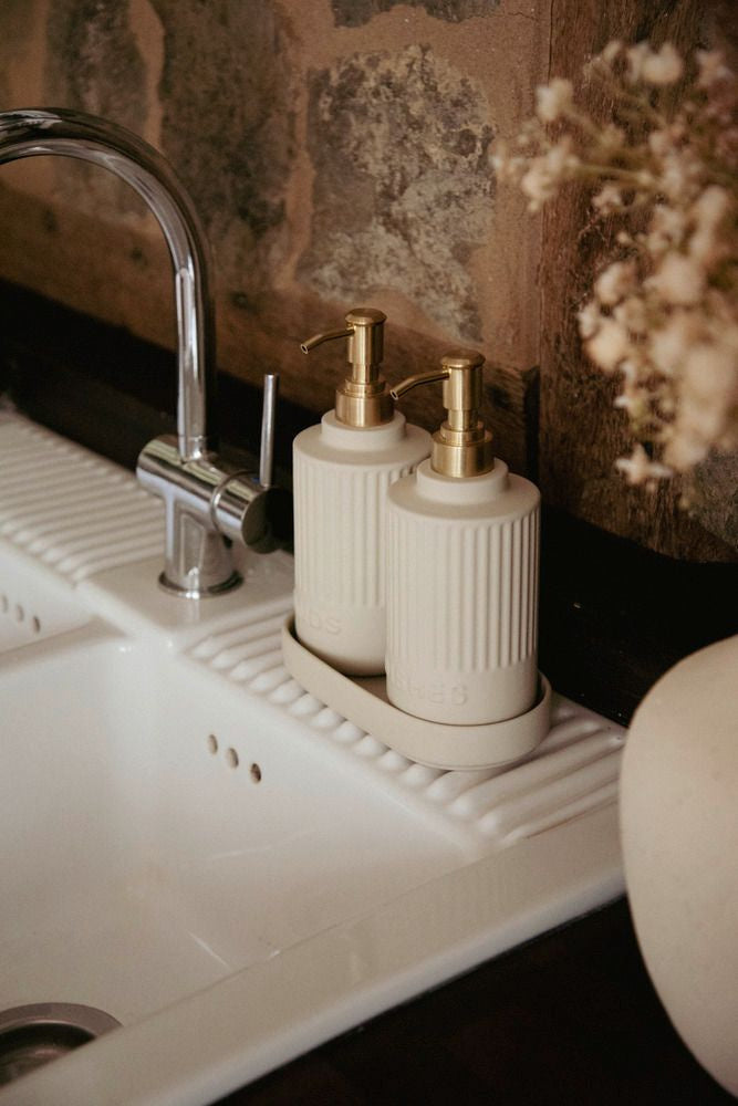 - Wysokiej jakości materiały: Wykonane z ceramiki, dozowniki charakteryzują się przyjemną w dotyku powierzchnią, co podnosi komfort ich użytkowania. Dodatkowo, matowe złote głowice pompy z plastiku dodają elegancji i nowoczesności.