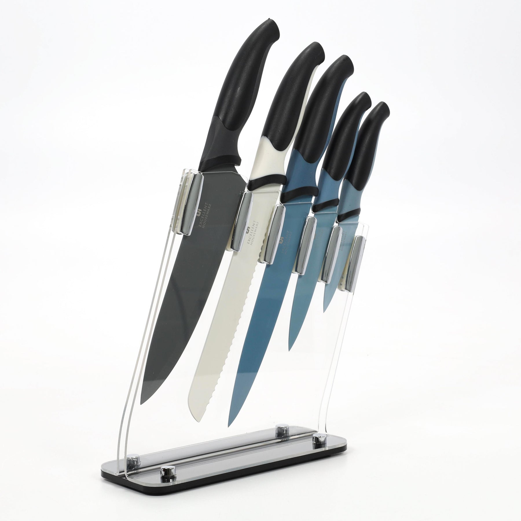 - na zestaw składa się pięć różnych noży oraz stojak,