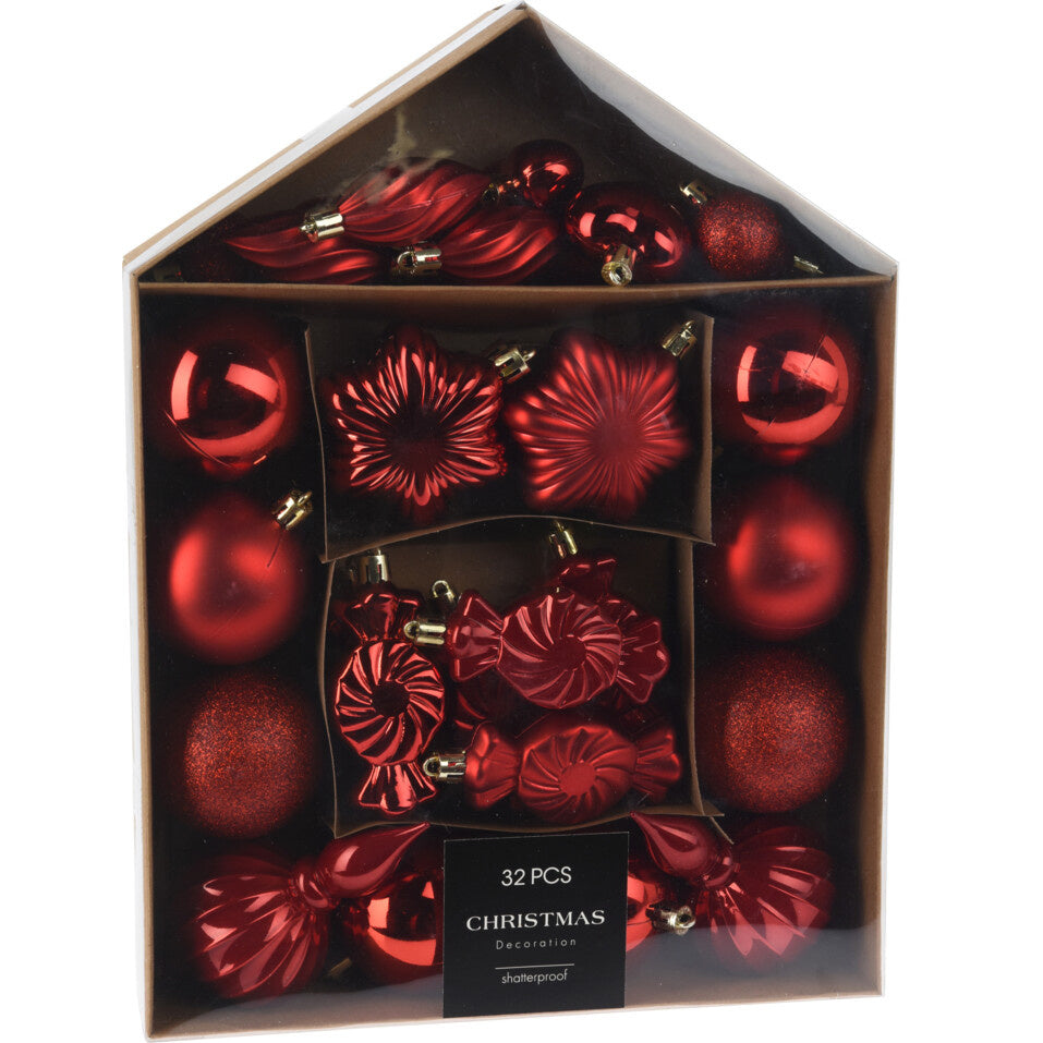 Zestaw ozdób na choinkę 32 elementy czerwone - Wysoka jakość materiałów zapewniająca długowieczność ozdób