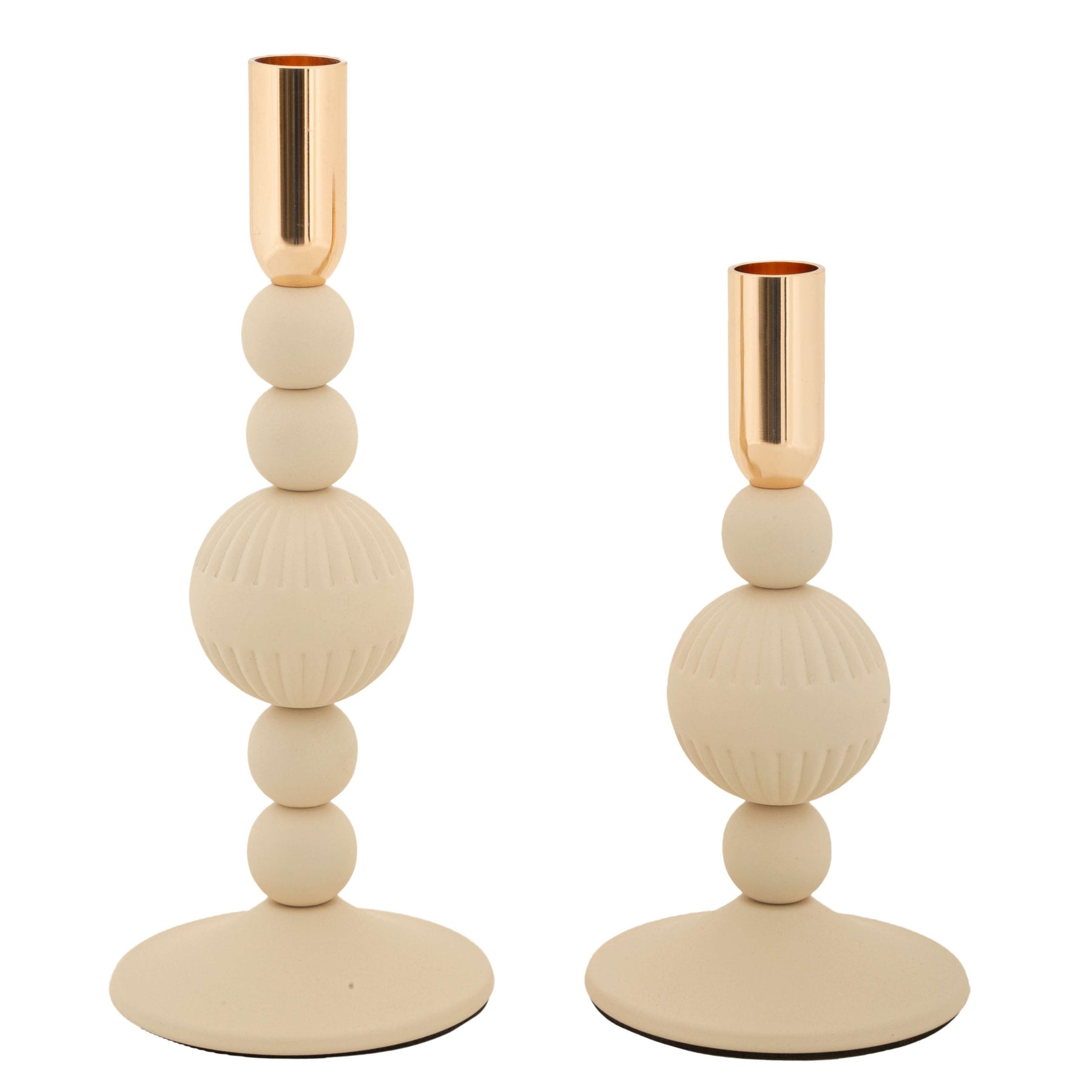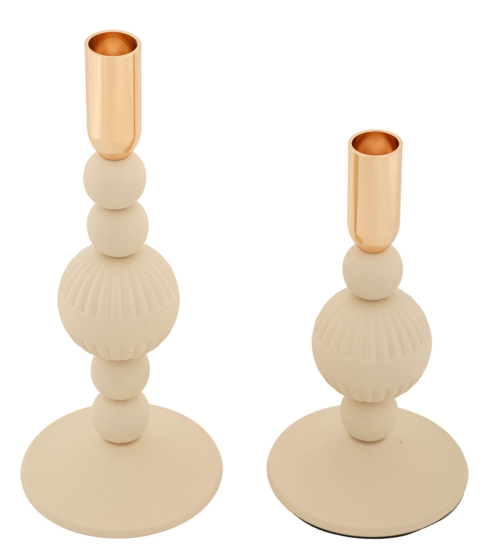 Zestaw eleganckich świeczników metalowych ASTER w kremowym i jasnoróżowym kolorze - elegancki design, który doda charakteru każdemu wnętrzu