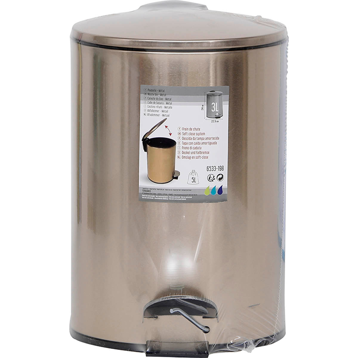 - Praktyczna pojemność: Kosz o pojemności 3 litrów jest idealny do użytku w łazience, zapewniając wystarczająco dużo miejsca na codzienne odpady. Dzięki kompaktowym wymiarom (17 x 22,5 x 24 cm) zmieści się w każdym kącie.